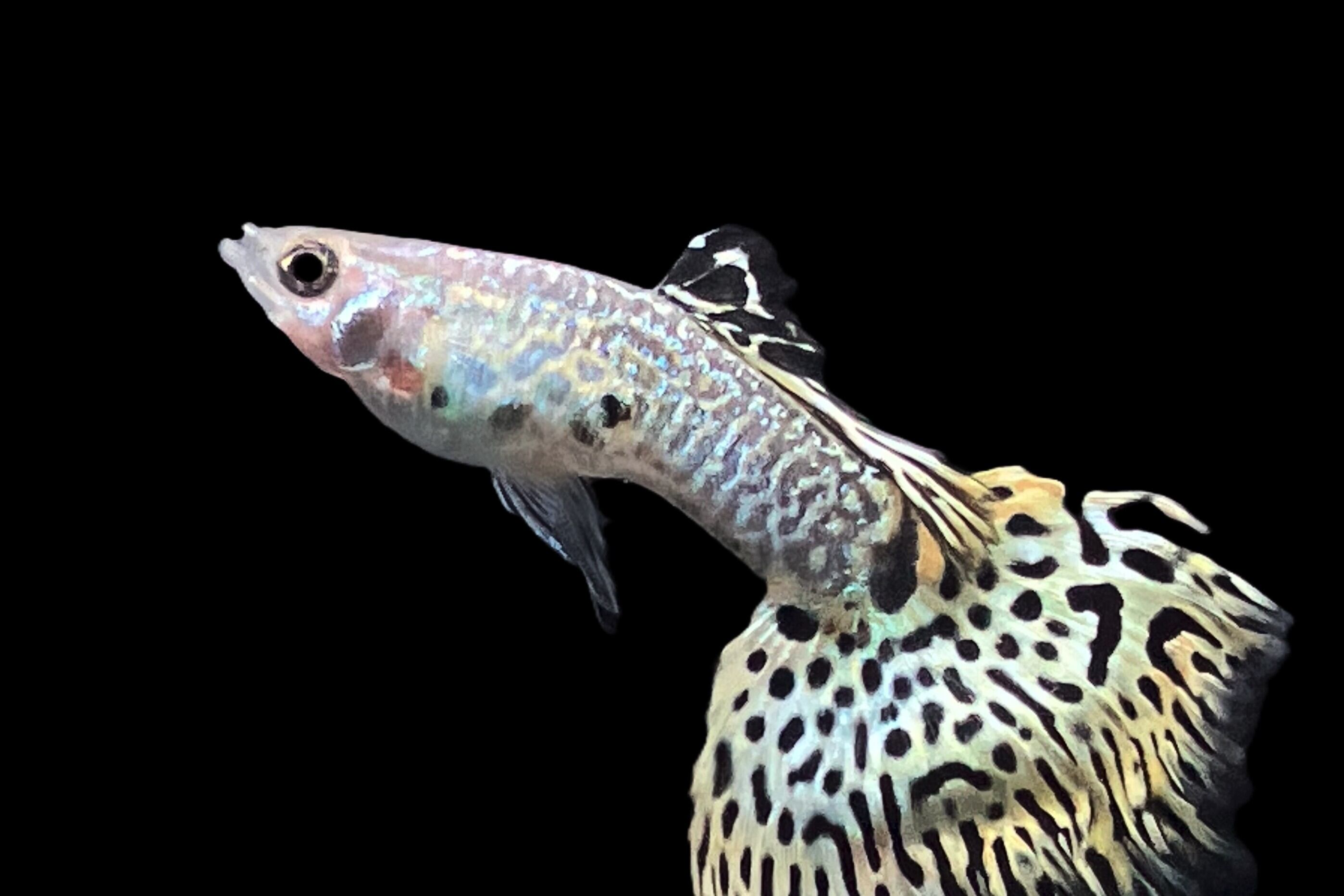 グリーンキングコブラグッピーは、その美しい緑色と特徴的な模様が魅力の熱帯魚です。水槽内での優雅な泳ぎは、観賞性を一段と引き立て、あなたの水槽を華やかに彩ります!性格は穏やかで、他の魚とも仲良く共存できるため、アクアリウム初心者の方にもぜひお試しいただきたい魚です。