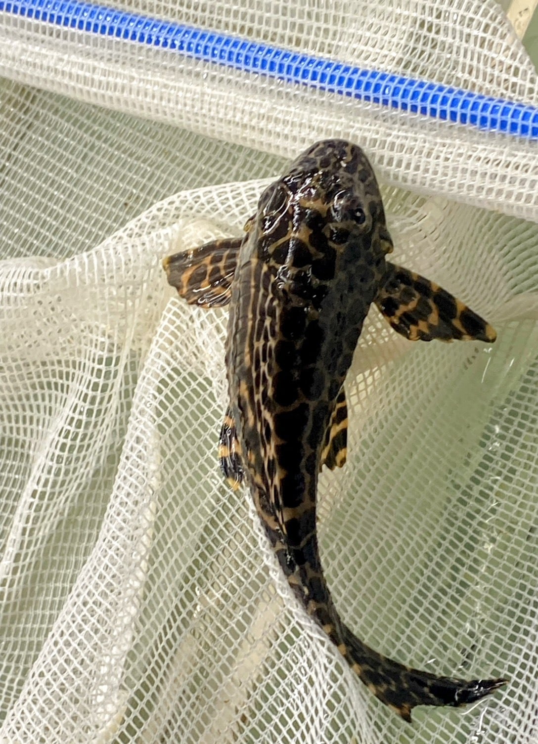 セルフィンプレコは、その美しい体色と独特なヒレの形状が特徴の人気熱帯魚です!水槽内での存在感は観賞の楽しさを引き立て、皆様に癒しの時間をもたらします。性格は温和で、他の魚たちとの共生もスムーズなため、アクアリウム初心者の方でも安心してお迎えできる個体です。美しい姿を楽しみながら、心地よい水槽ライフをご満喫ください。